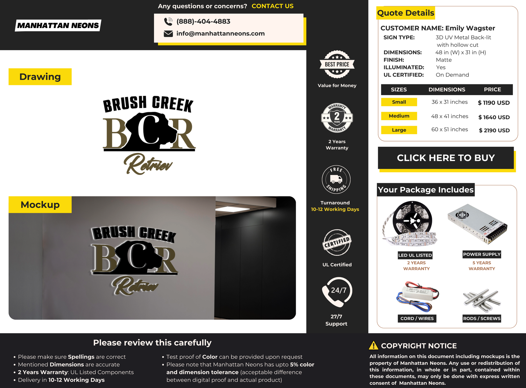 We offer 5 Years Warranty on all our neon signs. We care for all our customers to have a happy experience