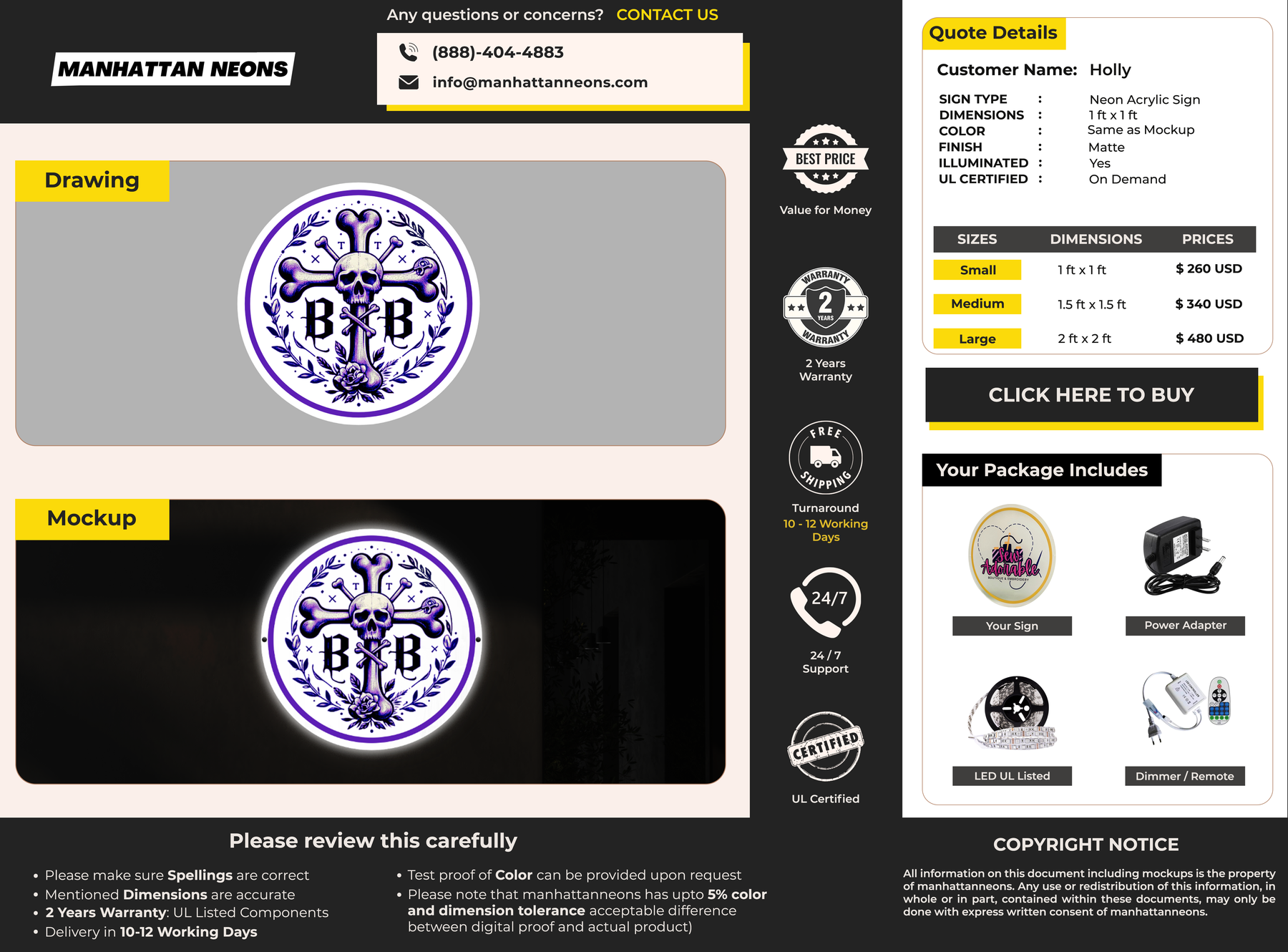 We offer 5 Years Warranty on all our neon signs. We care for all our customers to have a happy experience