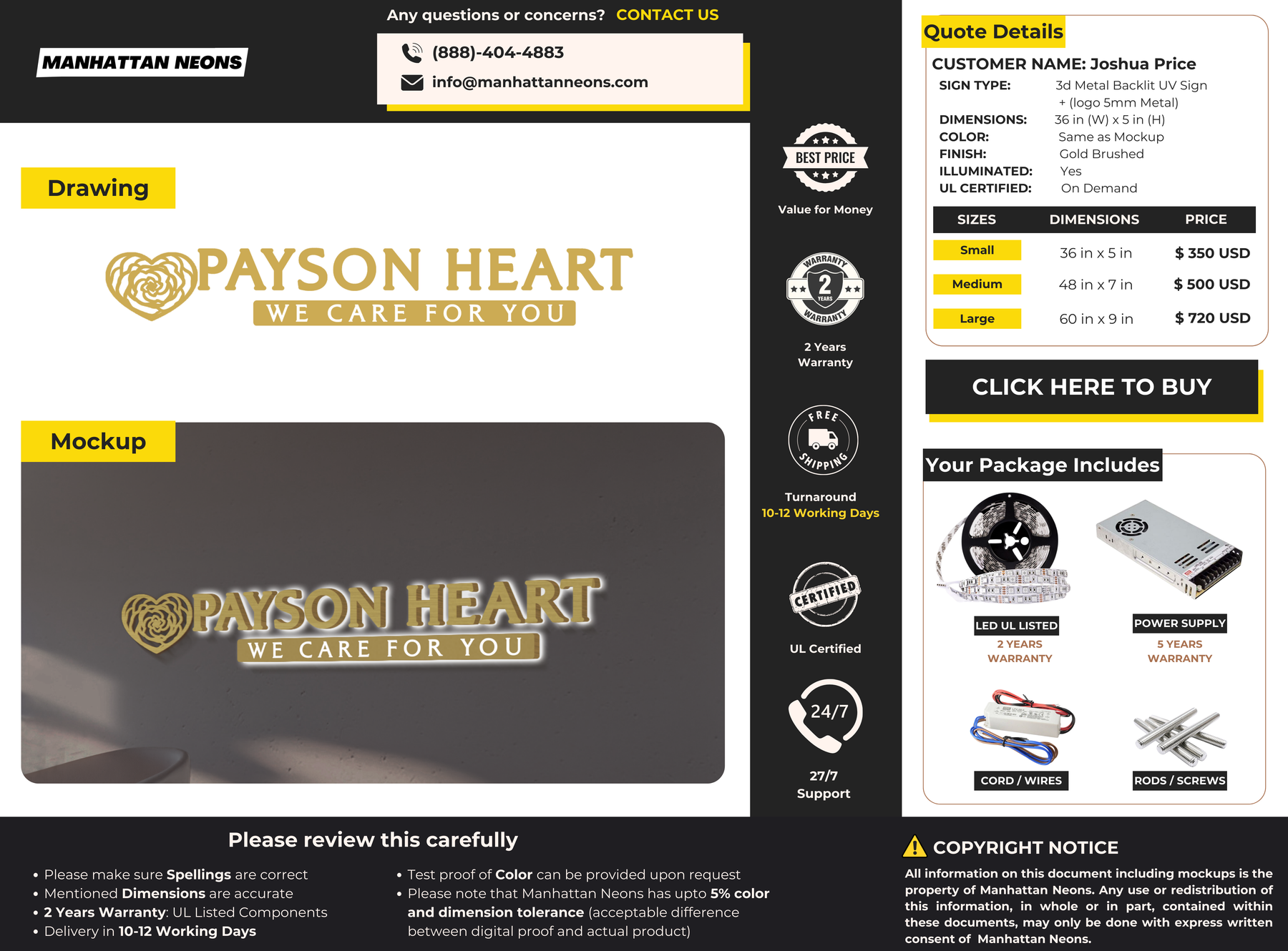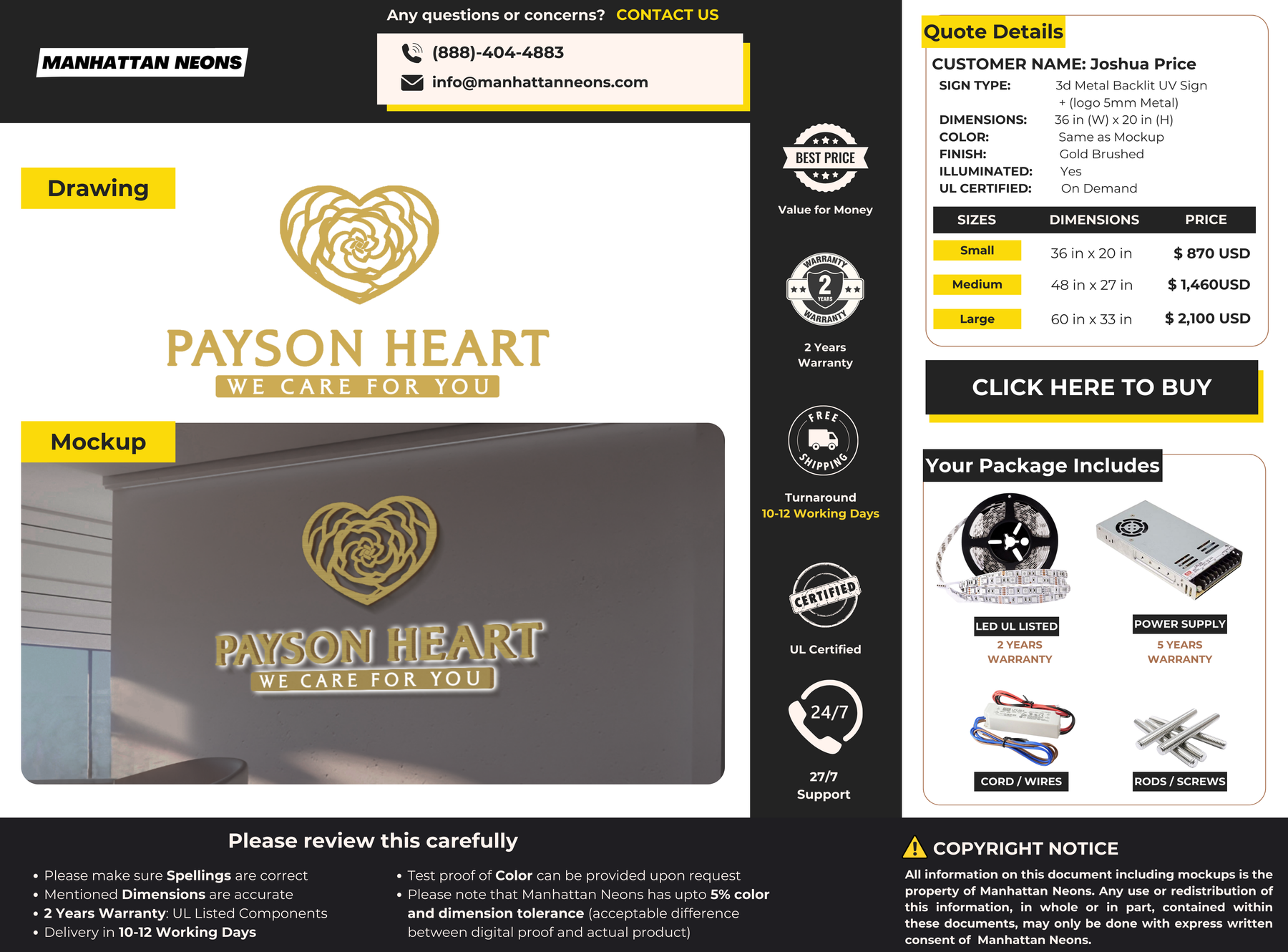 We offer 5 Years Warranty on all our neon signs. We care for all our customers to have a happy experience
