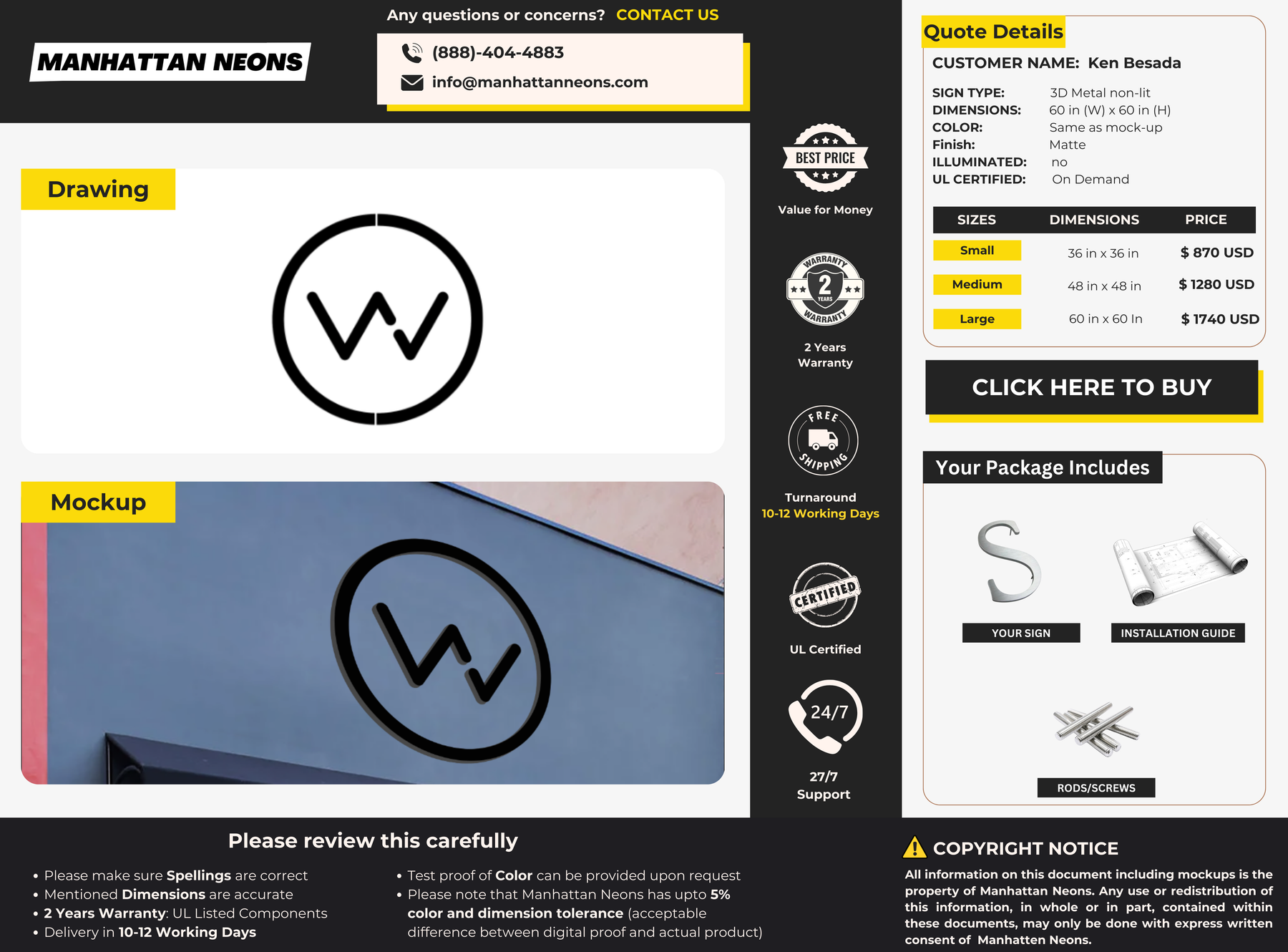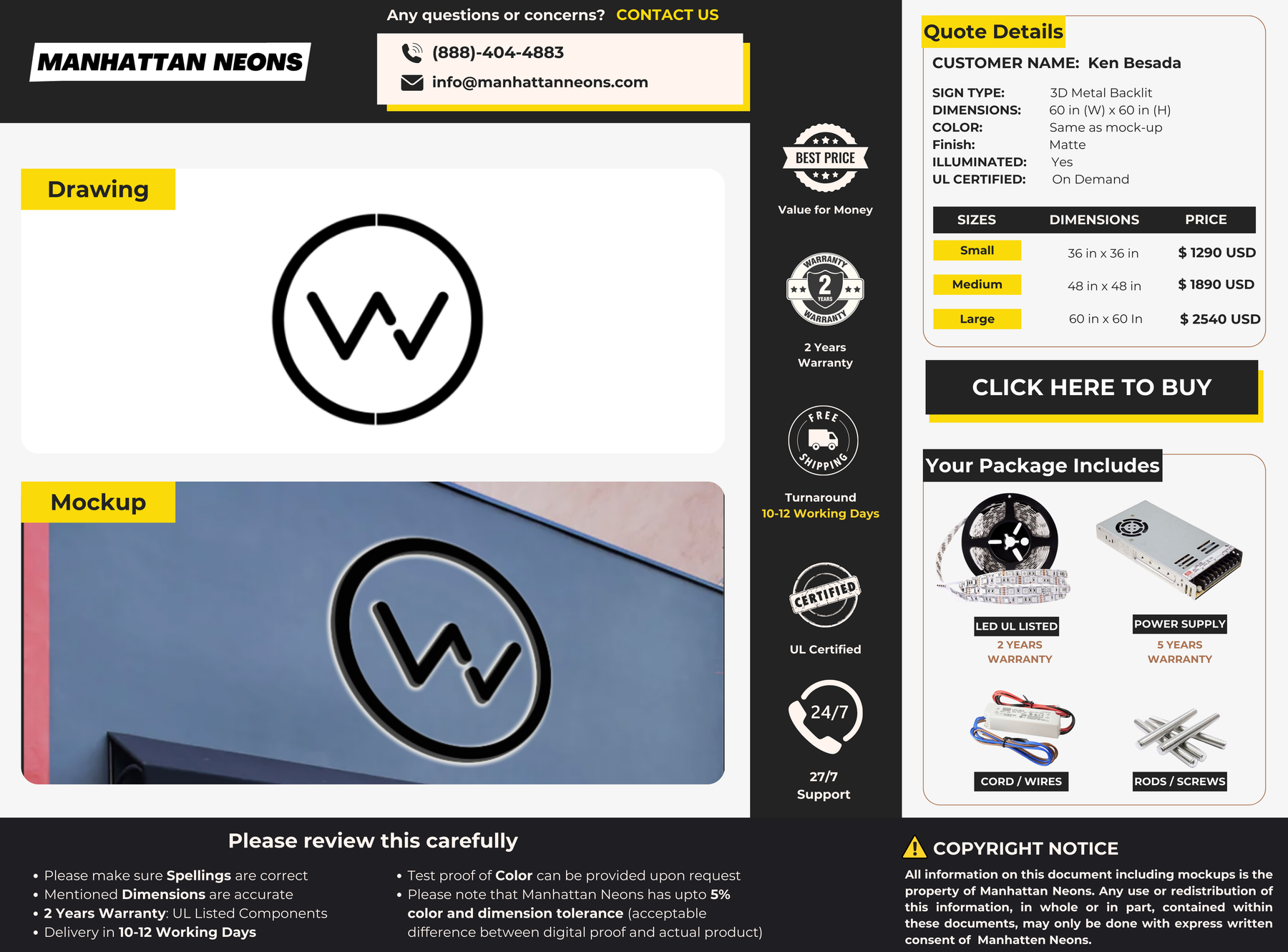 We offer 5 Years Warranty on all our neon signs. We care for all our customers to have a happy experience