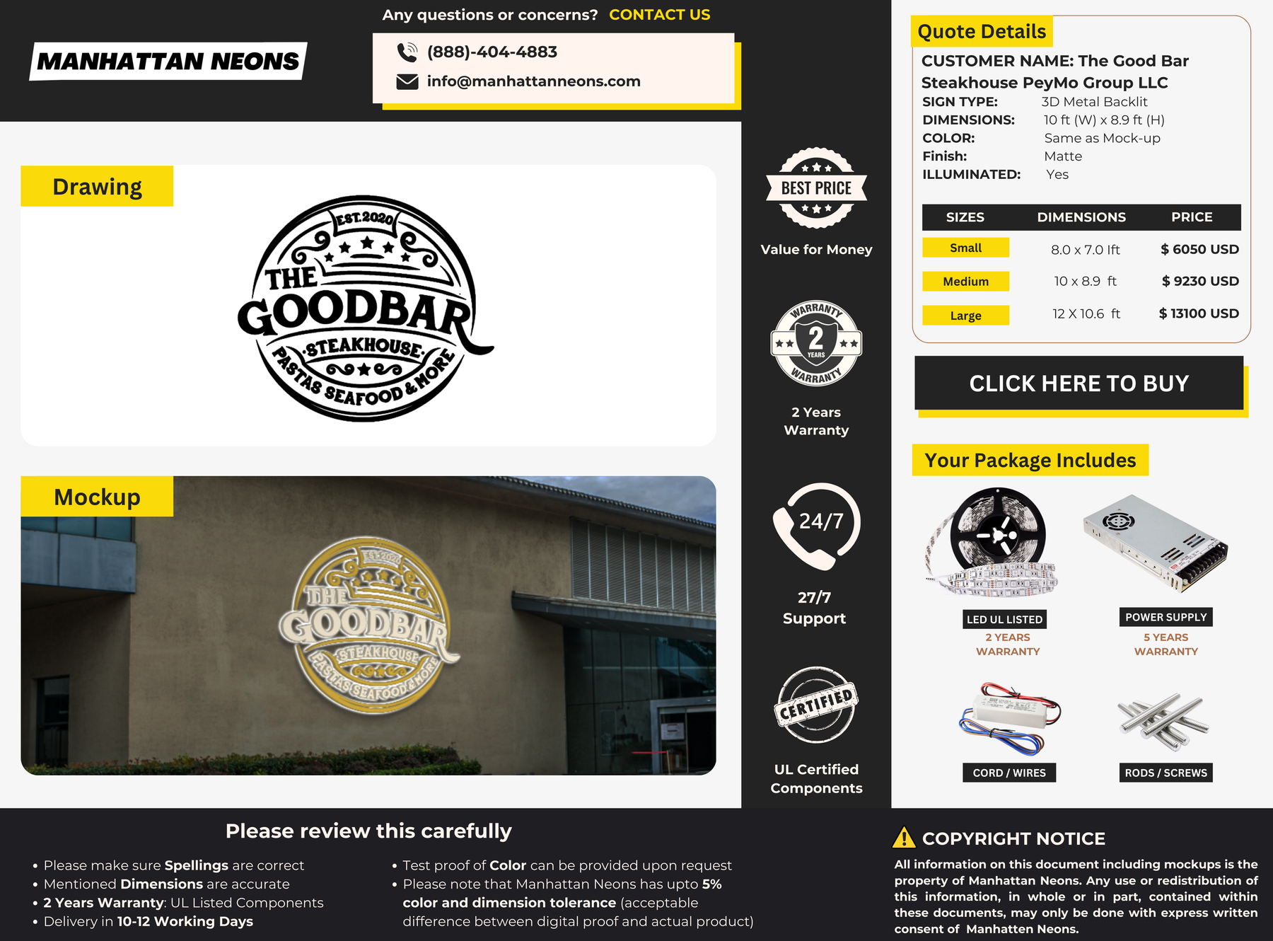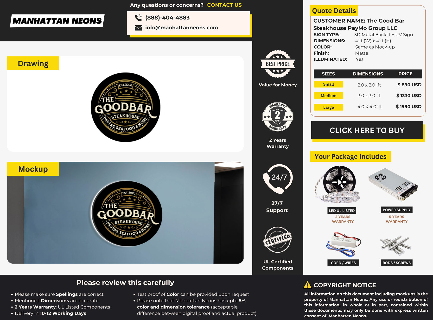 We offer 5 Years Warranty on all our neon signs. We care for all our customers to have a happy experience