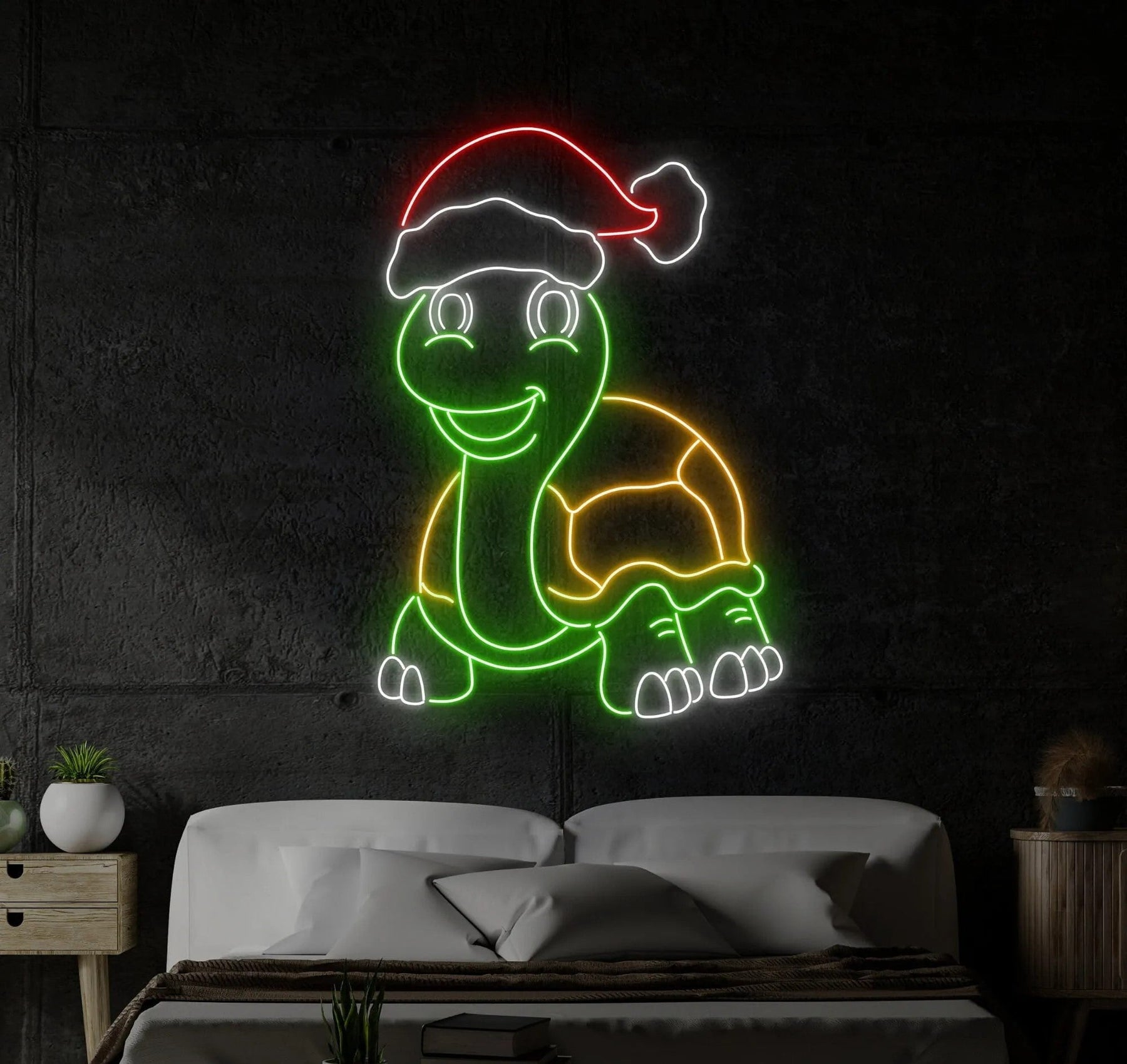 Bring charm and joy to your holiday décor with the Cute Turtle Merry Christmas Neon Sign by Neon.Shop. Featuring an adorable turtle design glowing in vibrant LED colors, this festive neon sign adds a playful and heartwarming touch to any space.