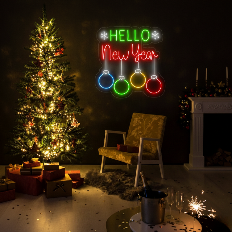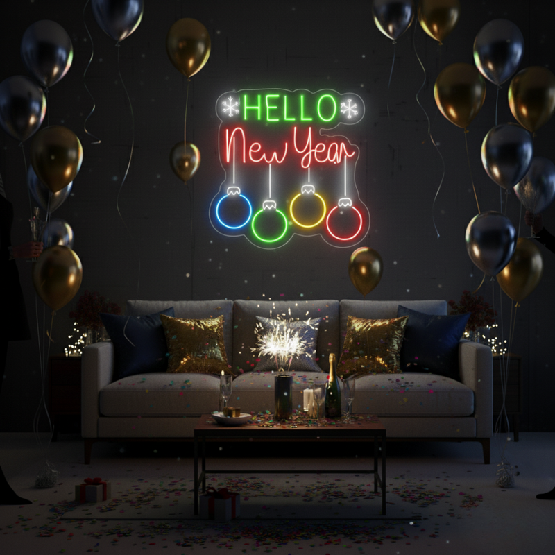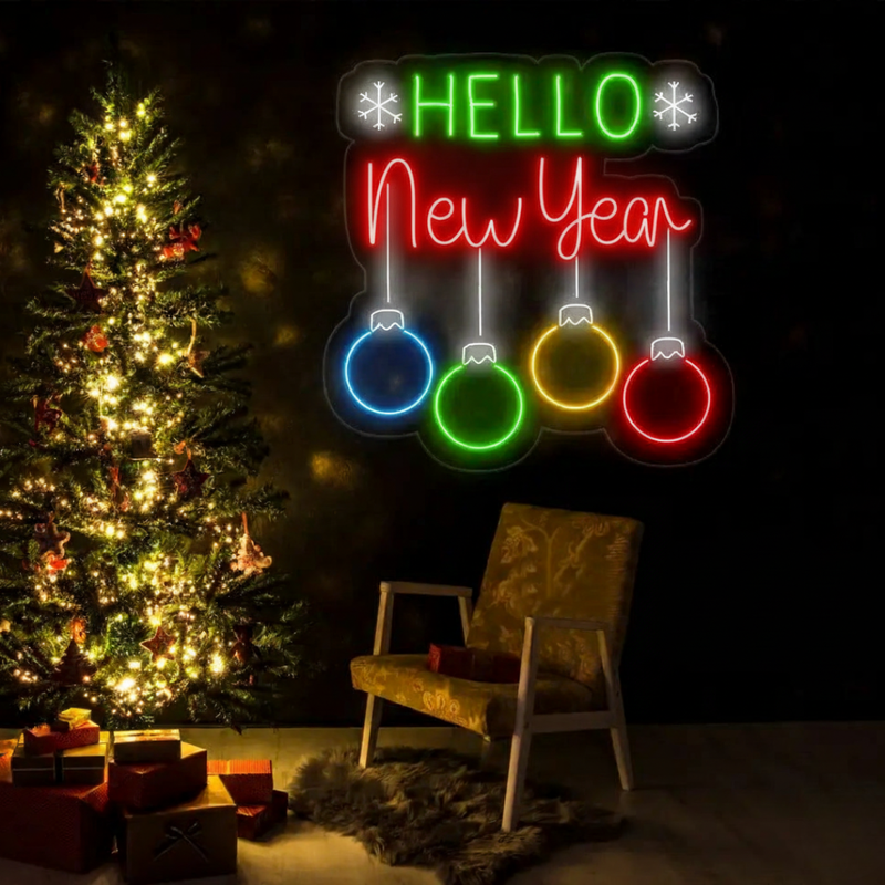 Greet the new year with vibrant style using the Hello New Year Neon Sign from Neon.Shop. This bright LED neon sign adds a cheerful, festive glow to any space.