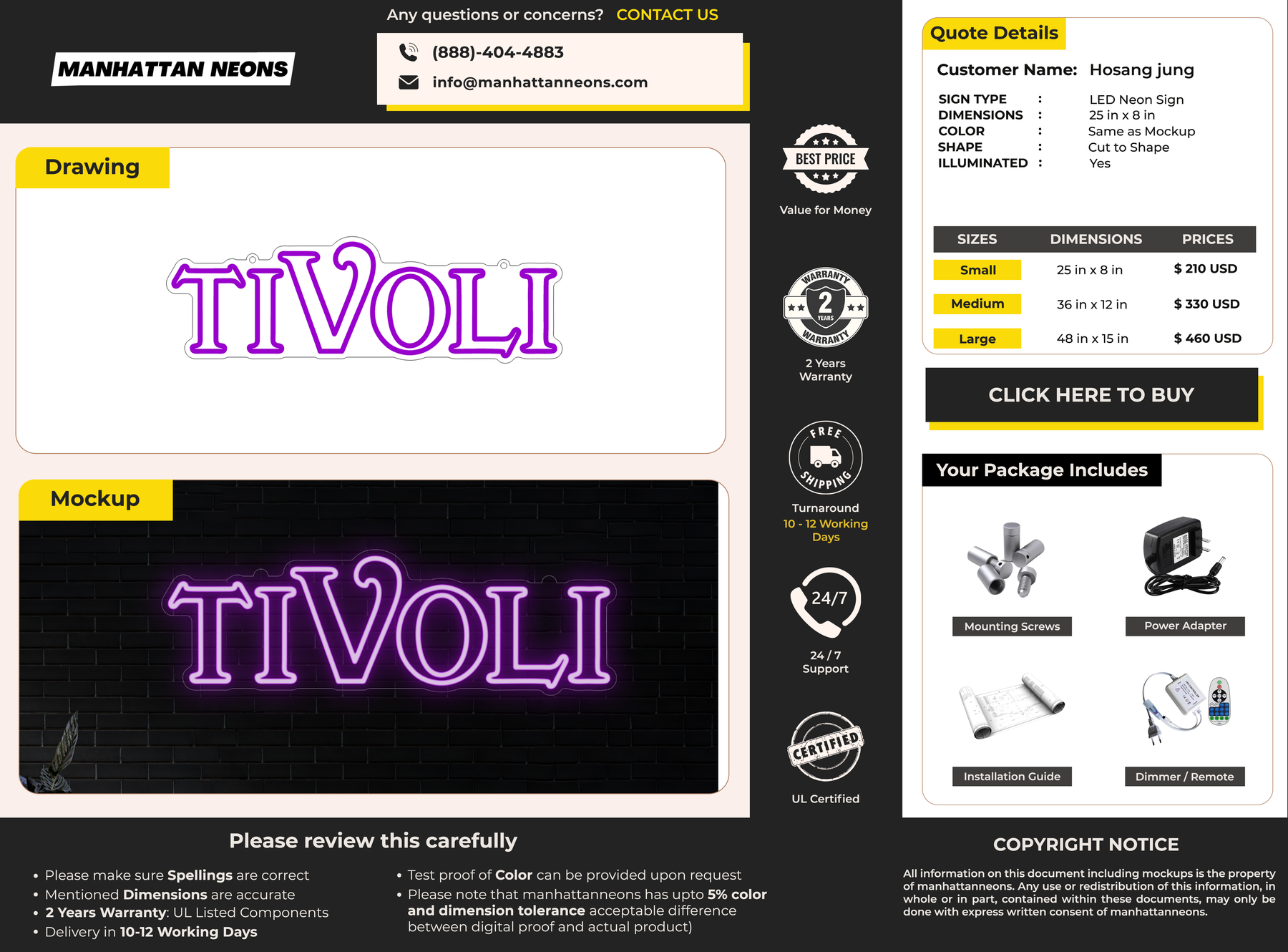 We offer 5 Years Warranty on all our neon signs. We care for all our customers to have a happy experience