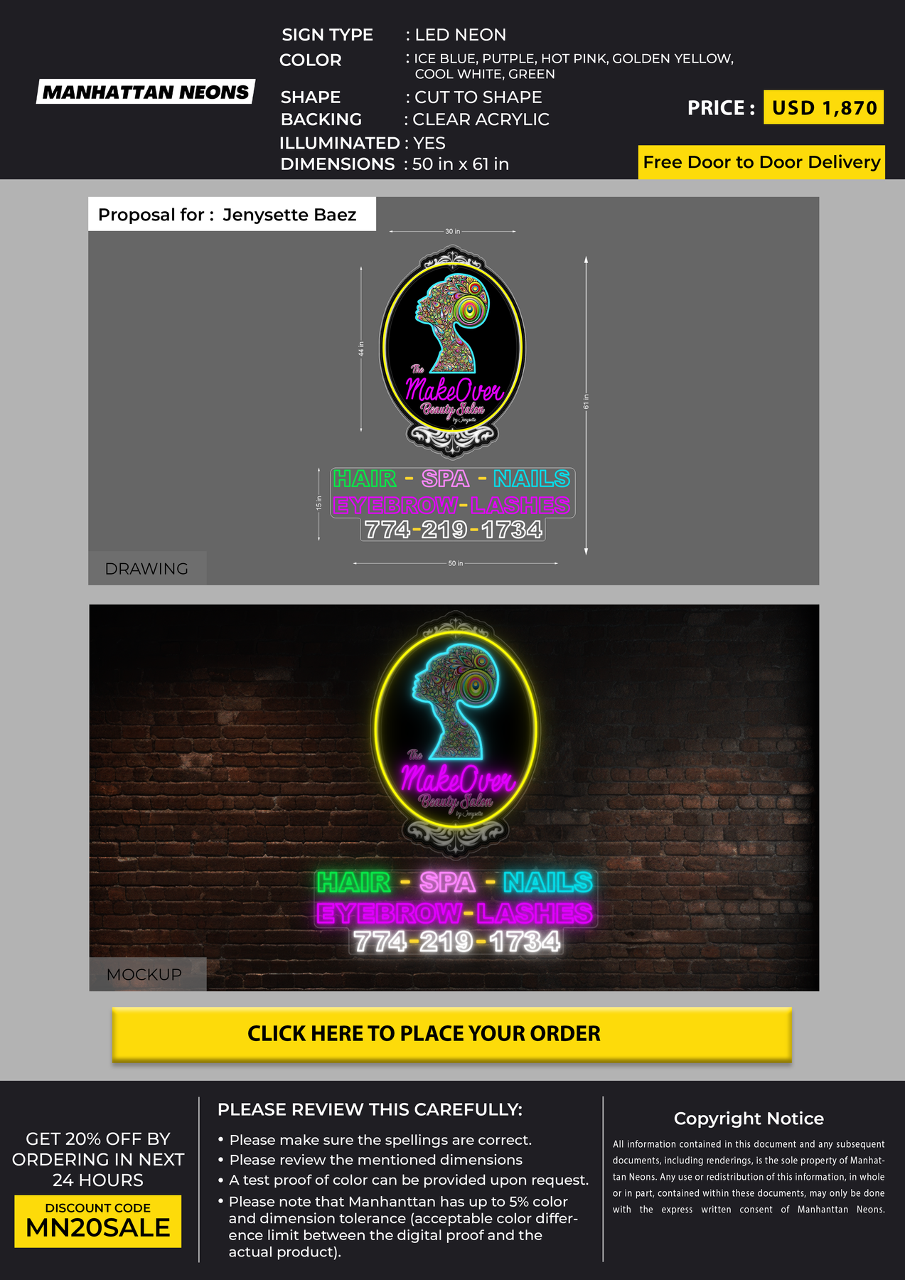 LED neon sign for Jenysette Baez