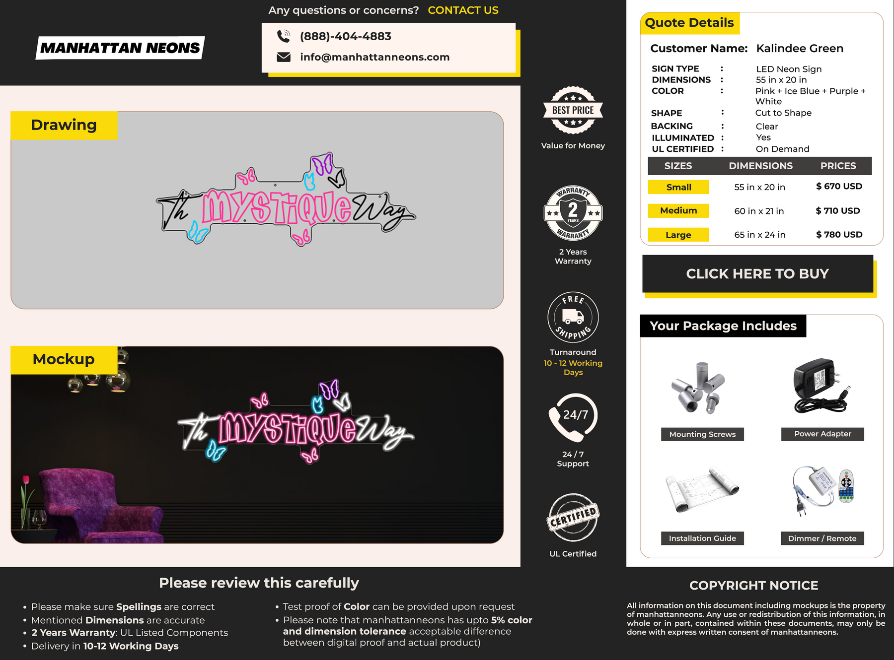We offer 5 Years Warranty on all our neon signs. We care for all our customers to have a happy experience