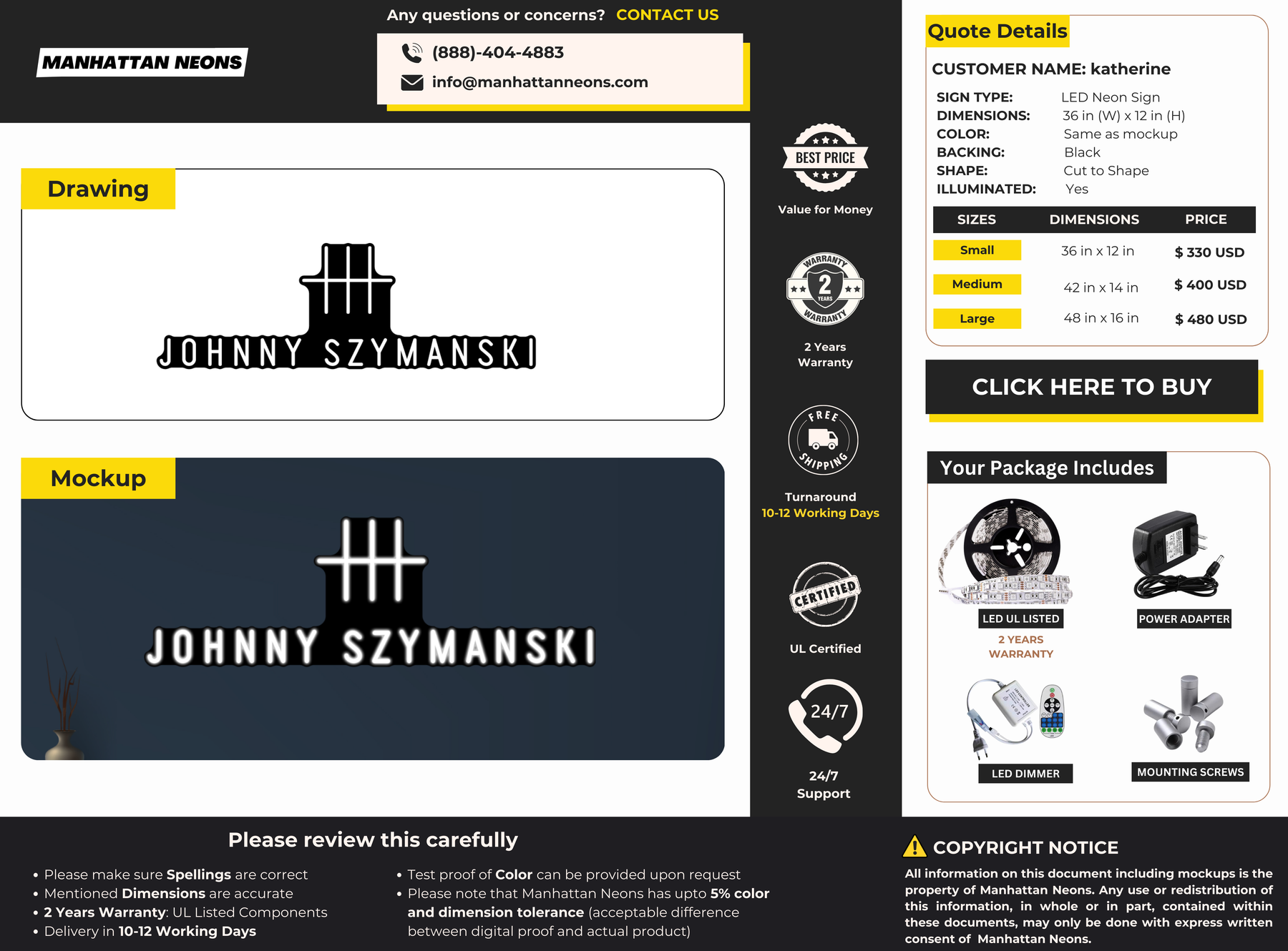 We offer 5 Years Warranty on all our neon signs. We care for all our customers to have a happy experience