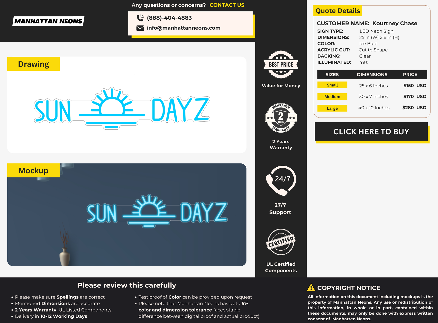 We offer 5 Years Warranty on all our neon signs. We care for all our customers to have a happy experience