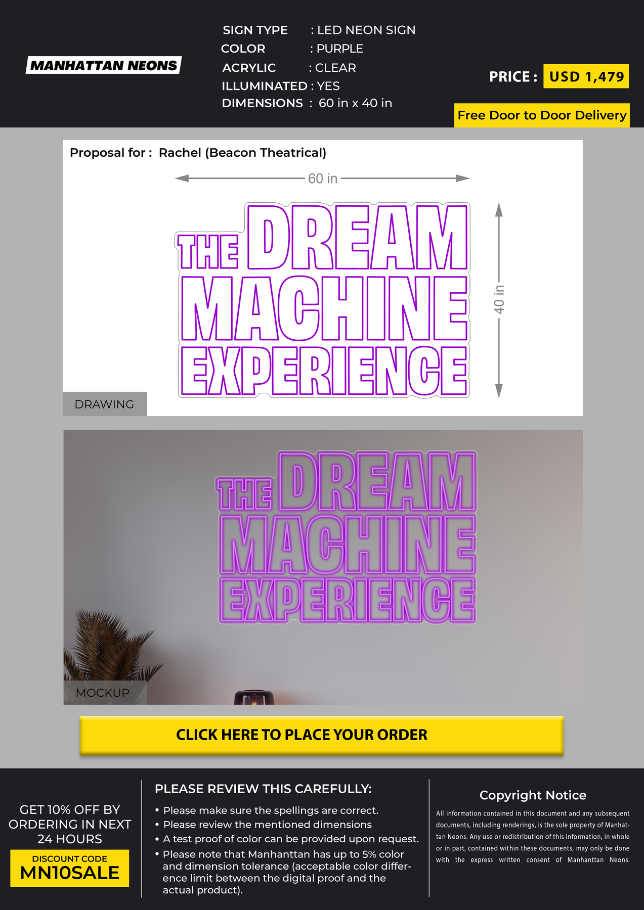Led Neon Sign for Rachel (Beacon Theatrical)