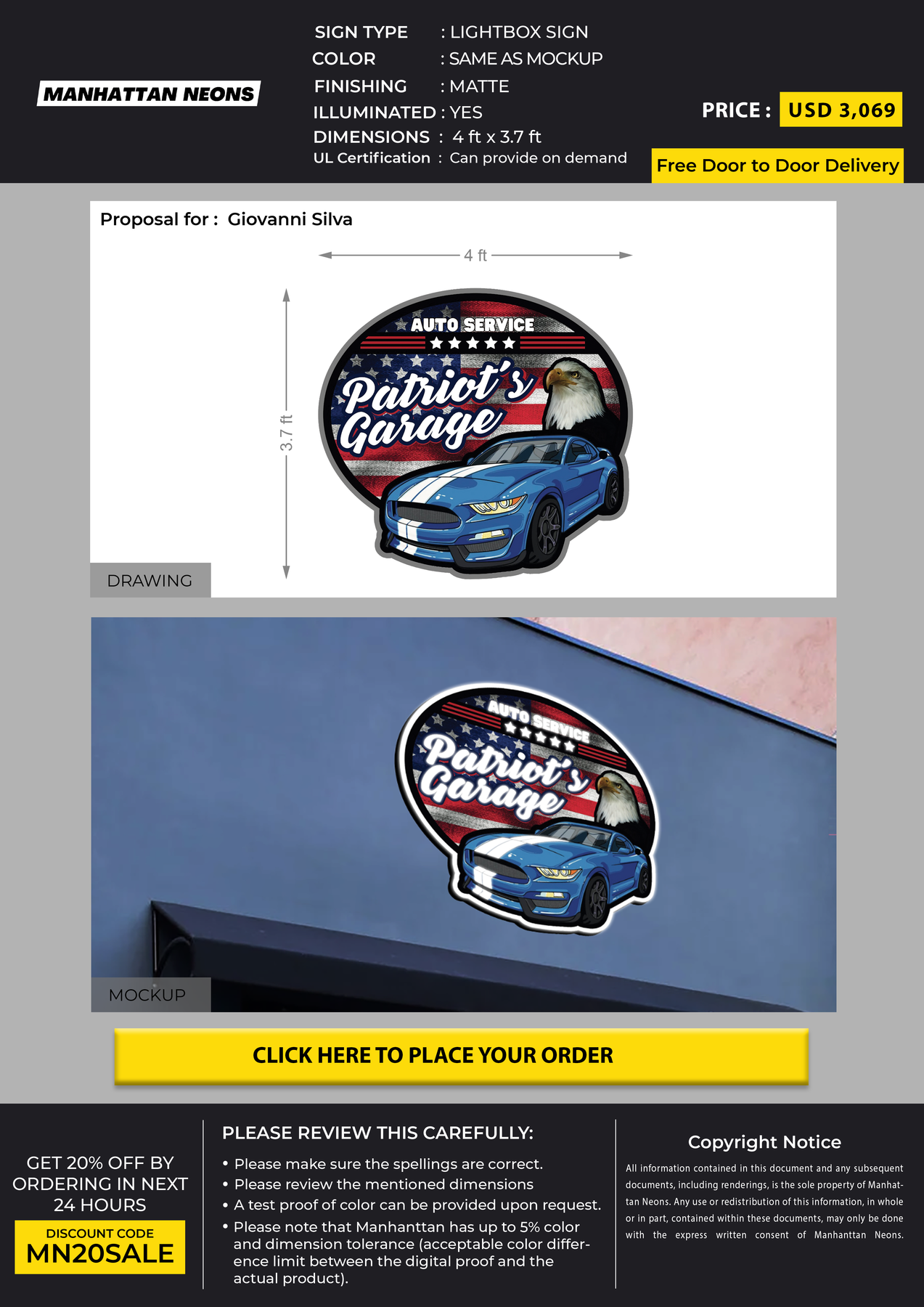 Light Box sign for Giovanni Silva
