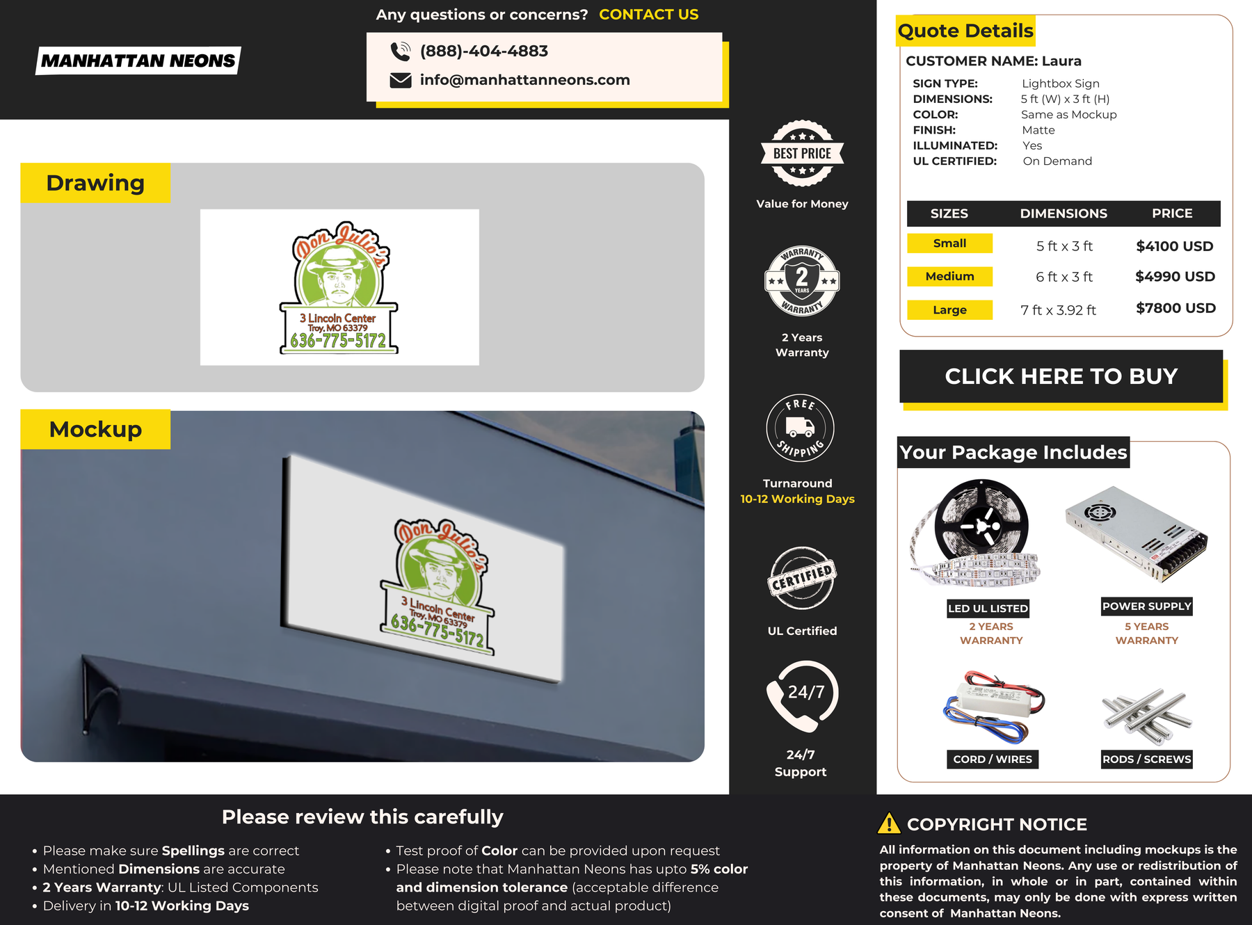 We offer 5 Years Warranty on all our neon signs. We care for all our customers to have a happy experience
