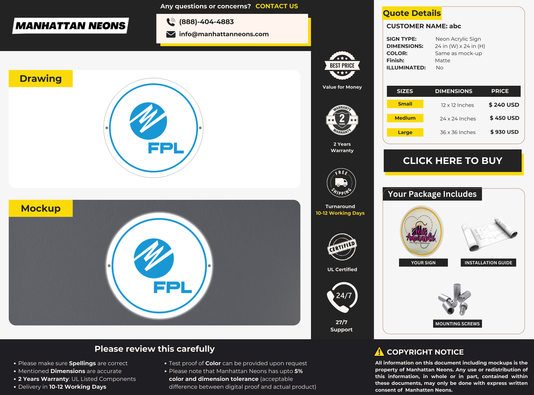 We offer 5 Years Warranty on all our neon signs. We care for all our customers to have a happy experience