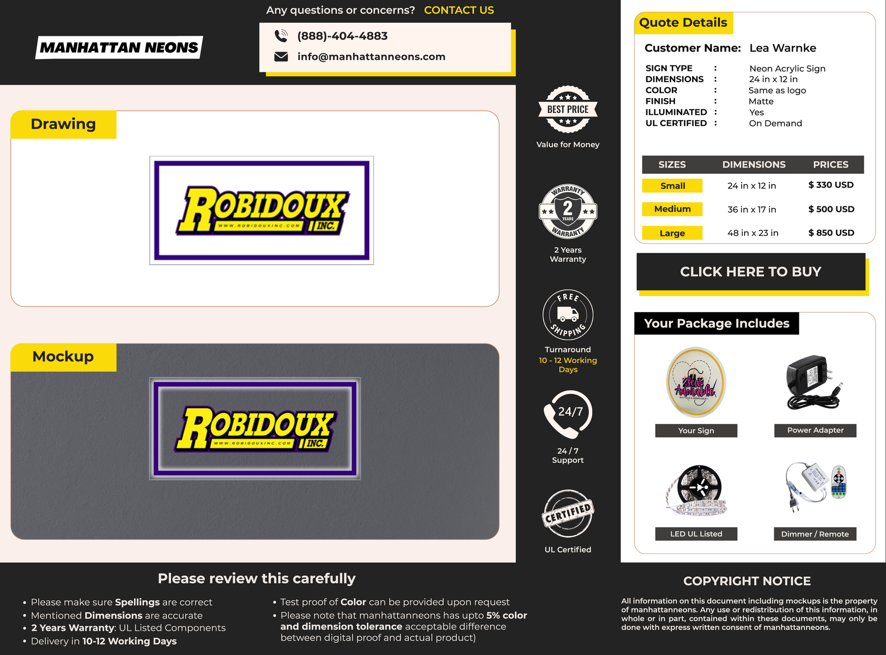 We offer 5 Years Warranty on all our neon signs. We care for all our customers to have a happy experience