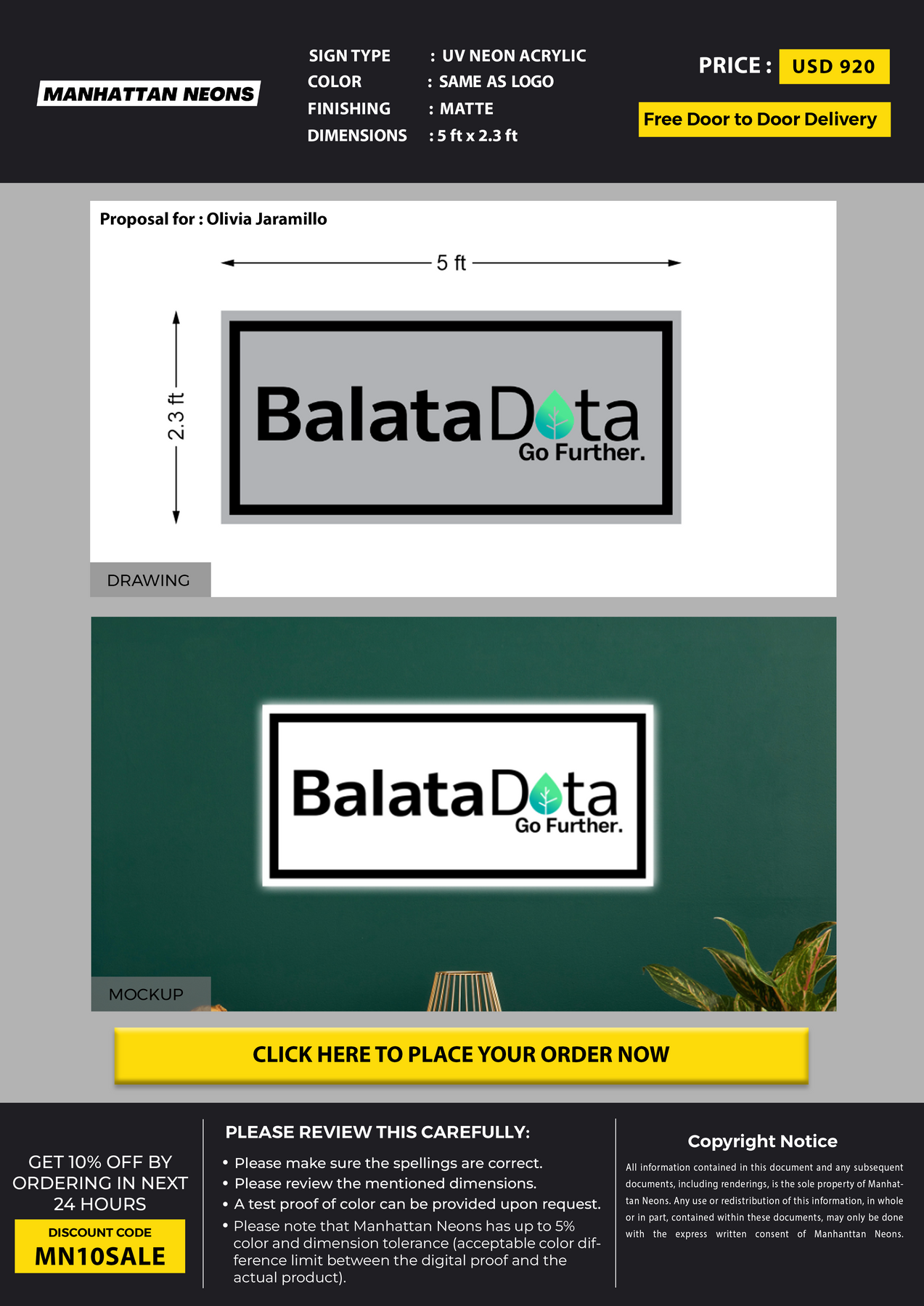 Neon Acrylic Sign for Olivia Jaramillo