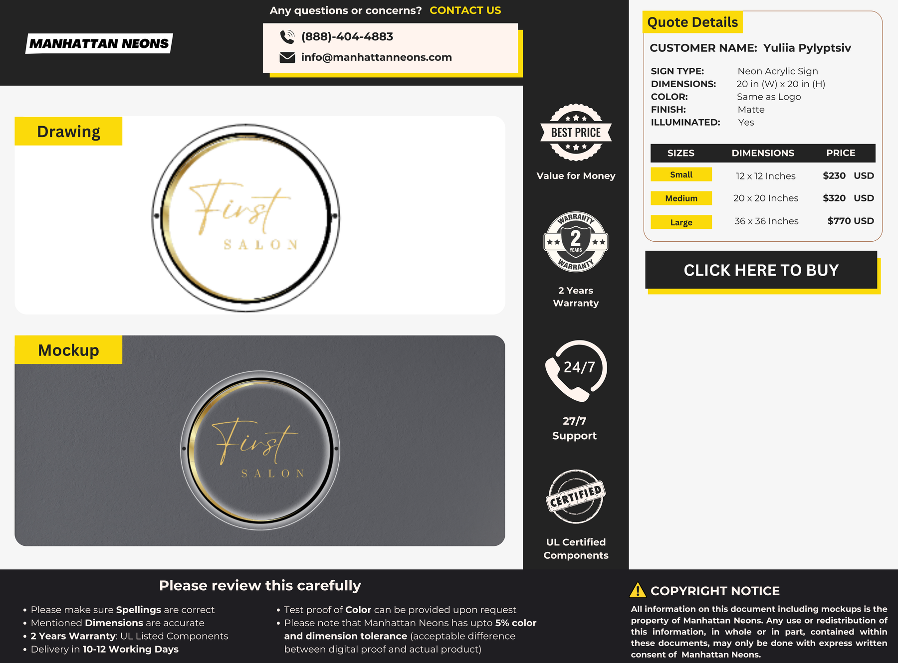 We offer 5 Years Warranty on all our neon signs. We care for all our customers to have a happy experience